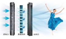 2.直列式贯流风叶,送风均匀更柔和一改传统创新运用直立式贯流风叶,让进风出风过程更流畅,保证风暴、风力和气流的均匀分布,送分更均匀、更顺畅、更柔和。